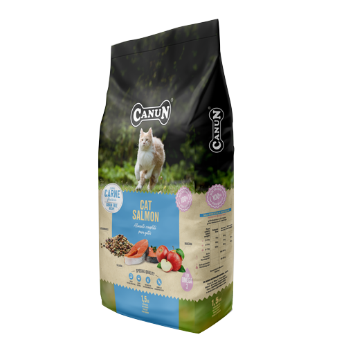 Elaborado con salmón fresco, sin cereales y con materias primas de altísima calidad, que aportan proteínas de alto valor biológico y que permiten una fácil digestión y asimilación. Además, el complejo condroprotector nos dará el soporte para unas articulaciones sanas.